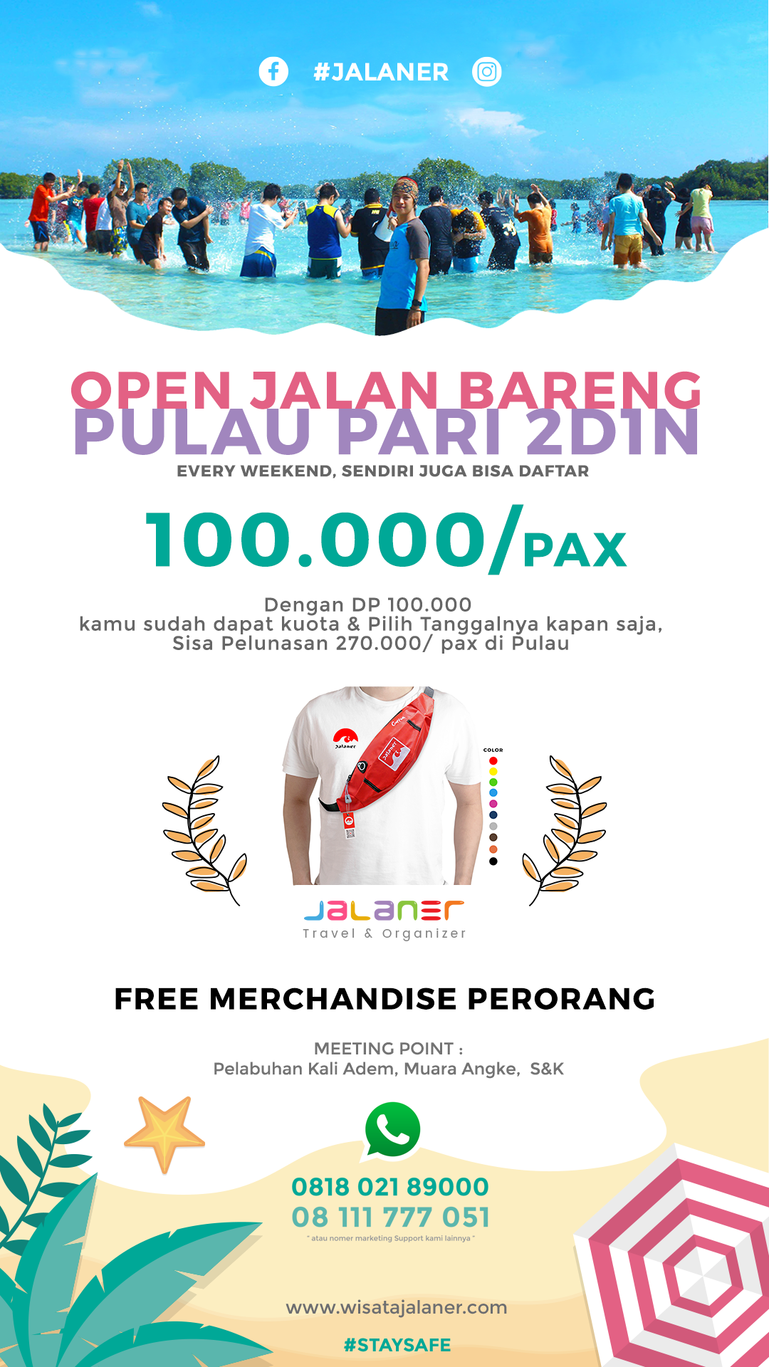 Open Trip Pulau kami kemas untuk kalian yang mau liburan dan jalan-jalan joint atau bergabung dengan peserta lainnya yang juga dalam jumlah minim. Kalian bisa menikmati wisata Pulau Harapan dengan harga yang sangat murah dibandingkan paketg private jika hanya bedua atua bertiga.
