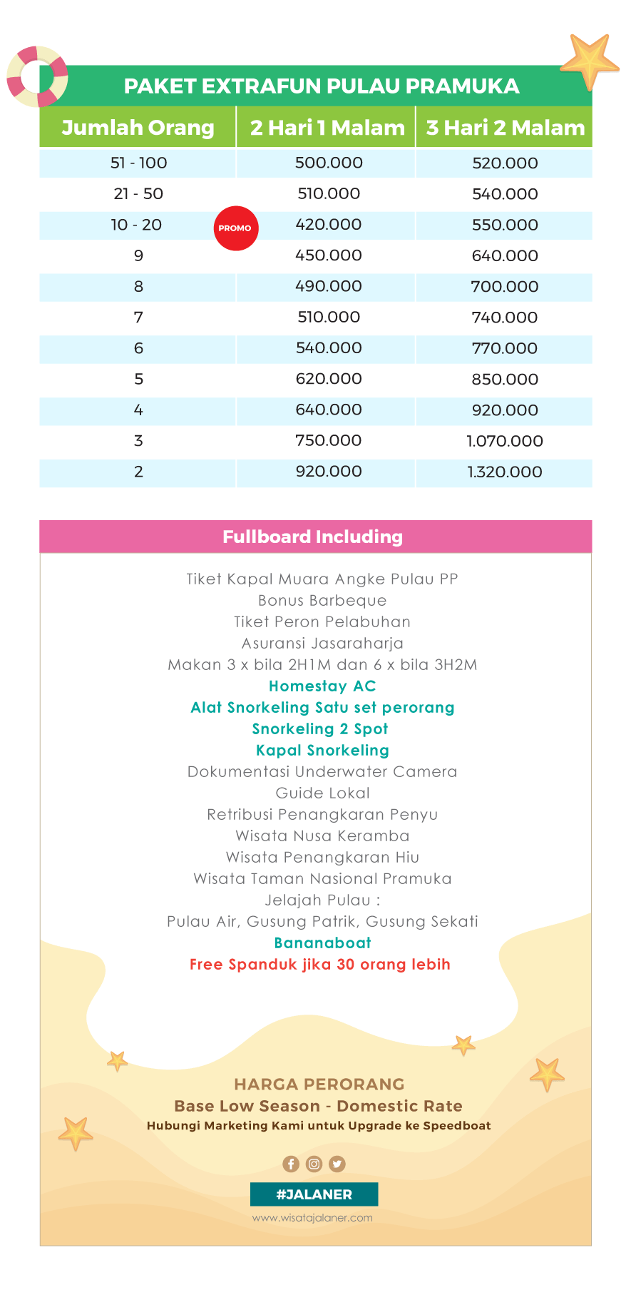 Wisata Bahari bersifat Flexible, Rundown acara sewaktu-waktu bisa berubah tergantung cuaca, kondisi di lapangan dan jadwal kapal.