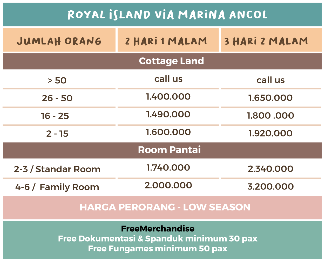 07:00 - 09:00 : Meet up, Dermaga marina Ancol dan Penyeberangan ke Royal Island